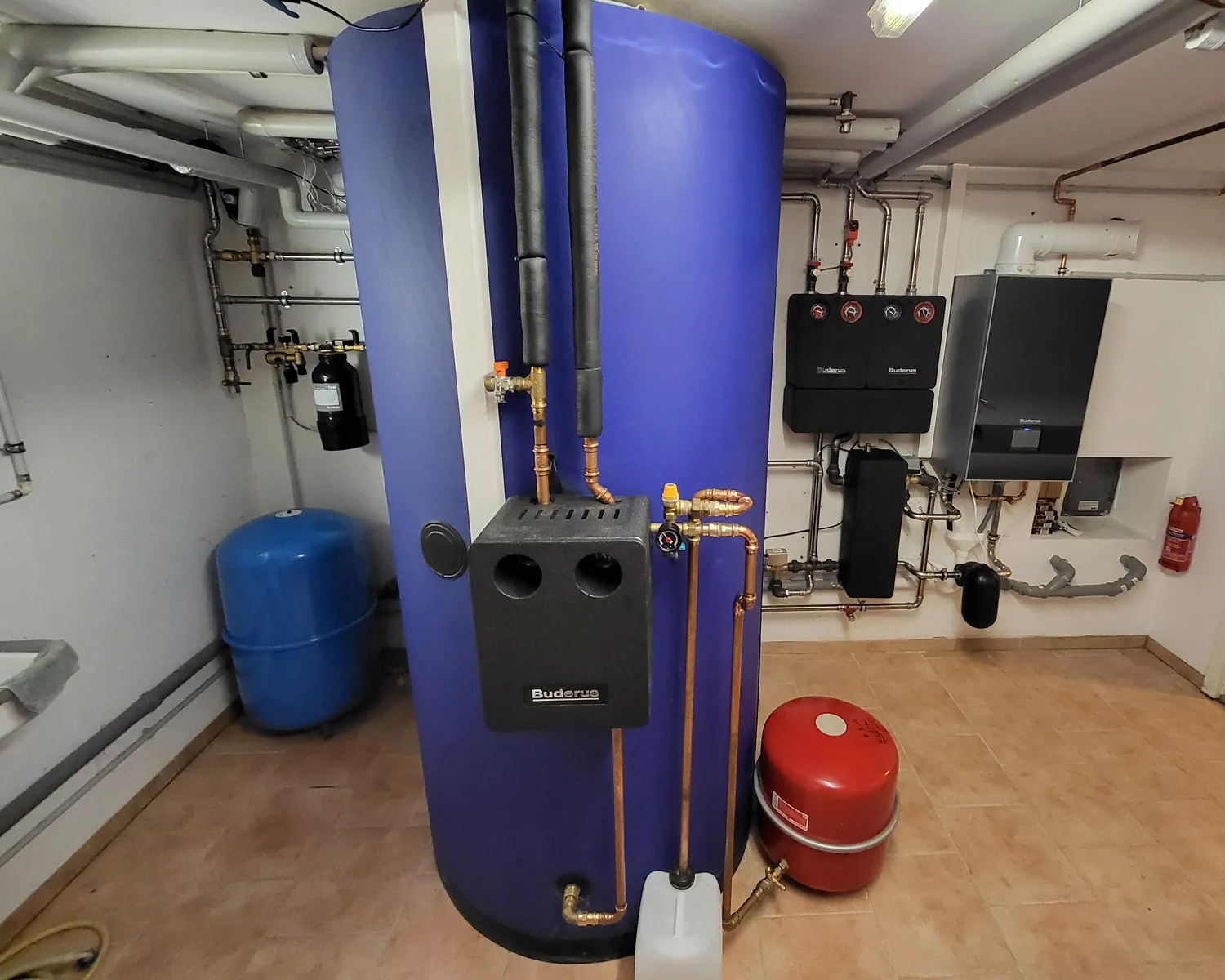 In einem Einfamilienhaus in Hagelstadt haben wir eine zukunftsfähige und wirtschaftliche Heizlösung umgesetzt: den Einbau eines Gasbrennwertgeräts von Buderus, kombiniert mit einem Hygienespeicher und einer solaren Heizungsunterstützung.