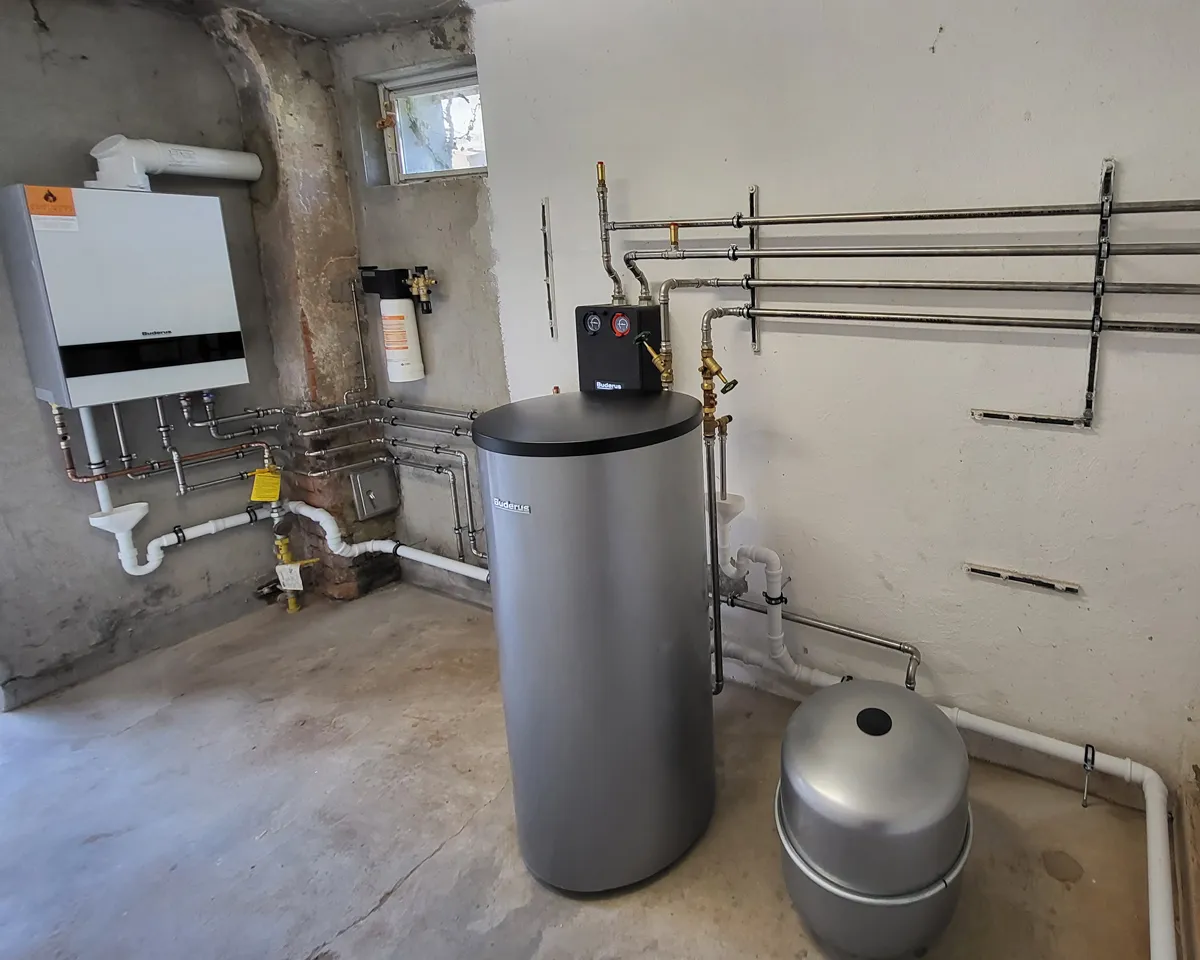 Für einen Gutshof in Maintal haben wir die komplette Heizungsanlage neu realisiert – mit einer leistungsstarken Gas-Brennwertheizung von Buderus. Die Anlage wurde exakt auf die Bedürfnisse des Gebäudes abgestimmt und sorgt nun zuverlässig für Wärme und Warmwasser im gesamten Wohn- und Wirtschaftstrakt.